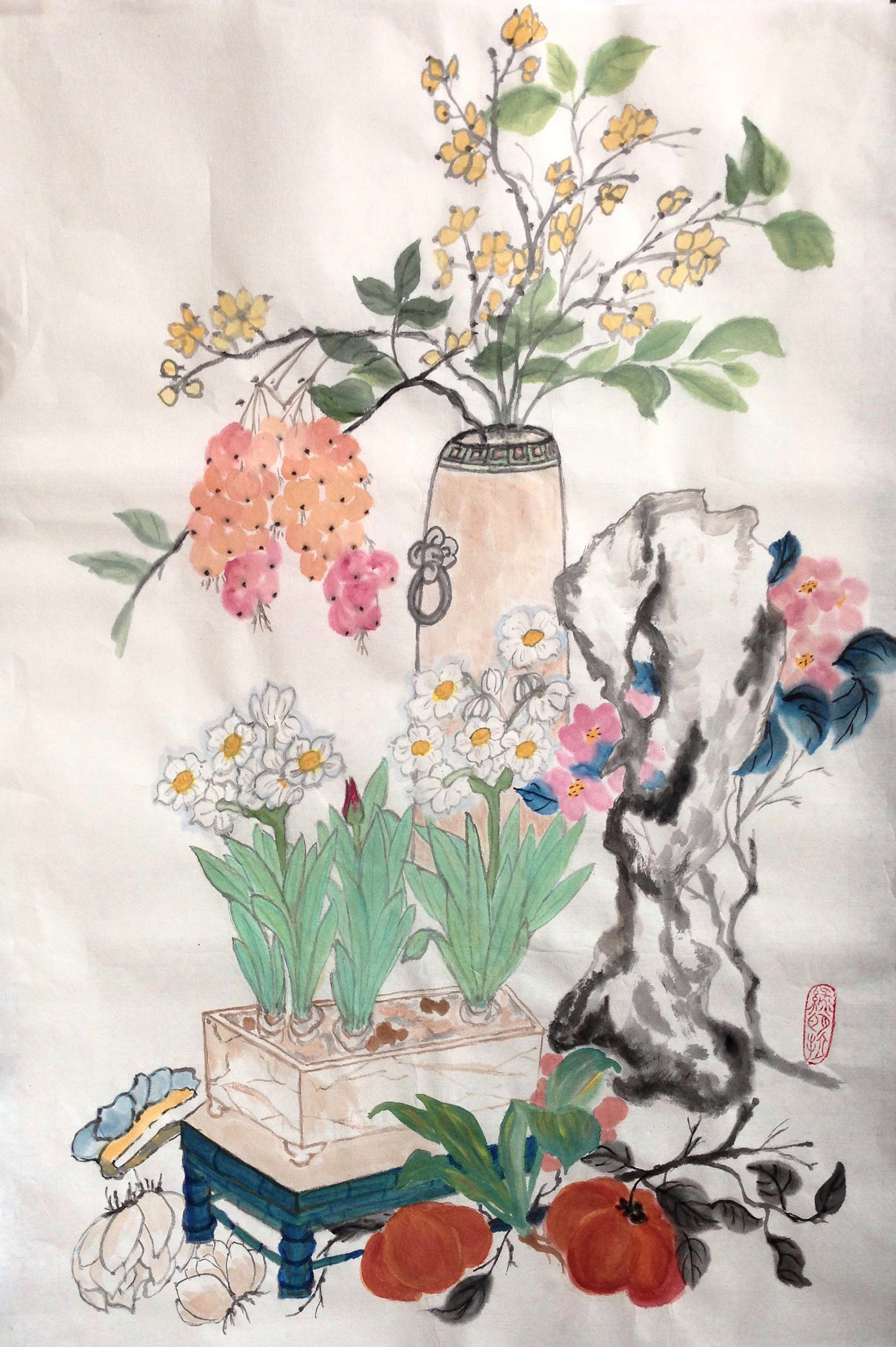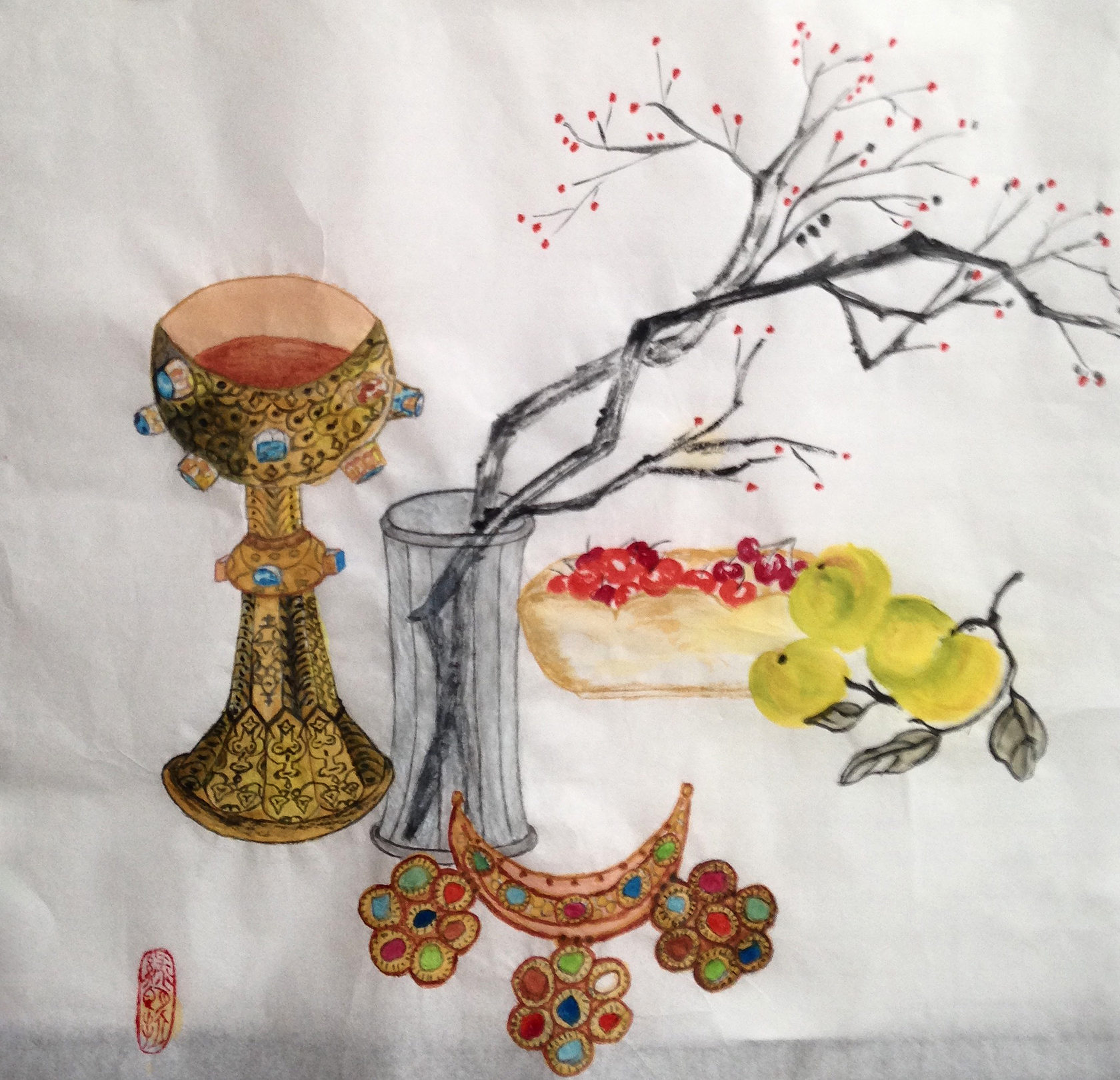 Combining in one composition the tradition of the centuries and the recent blossoms, the artist seems to combine the eternal and the fleeting in one moment of time, saying that these are just different sides of one coin. Eternity is made up of moments and each moment is a whole eternity.