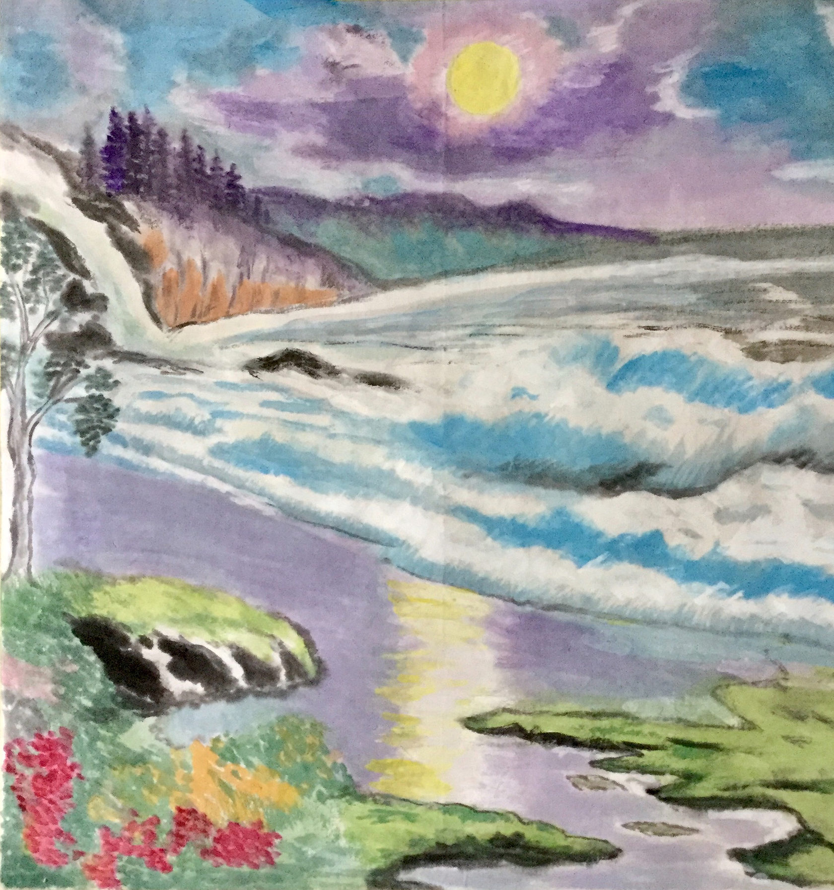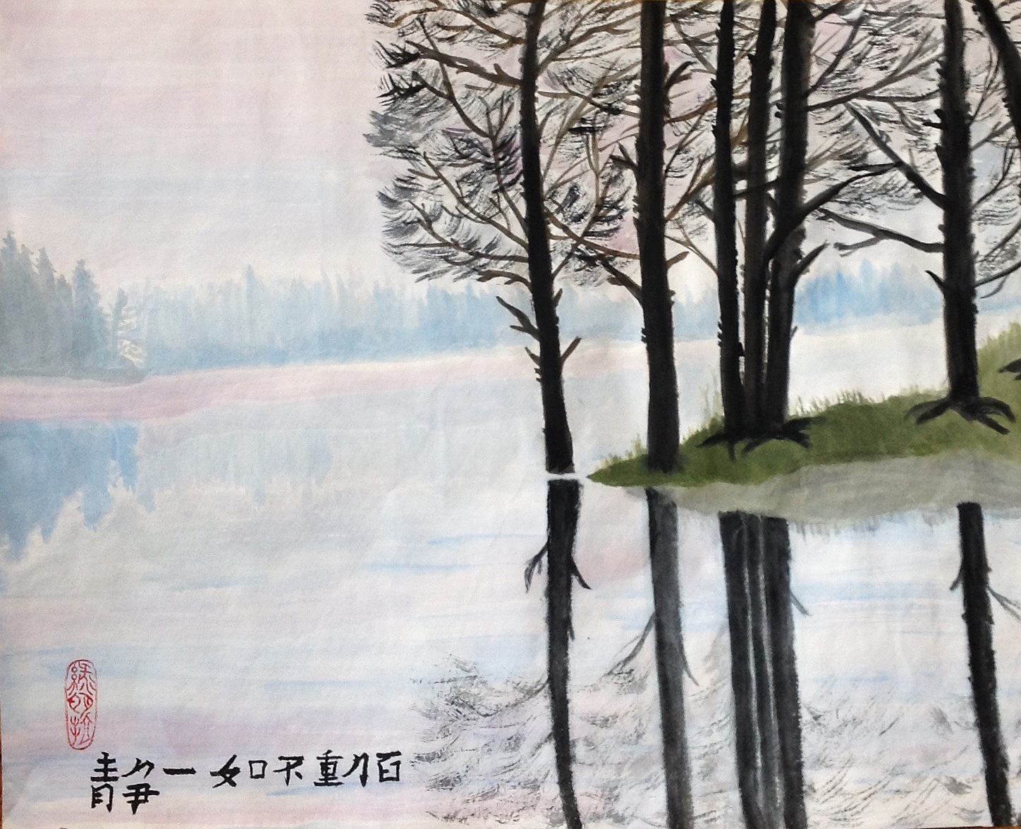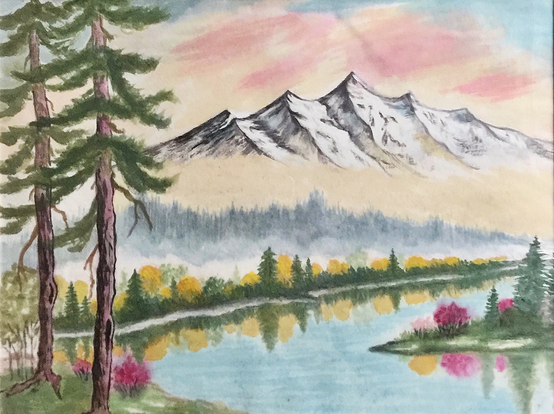 Перед тем, как написать пейзаж медитация в тишине вод, лесов и гор, мы на занятии должны были создать нужное настроение.