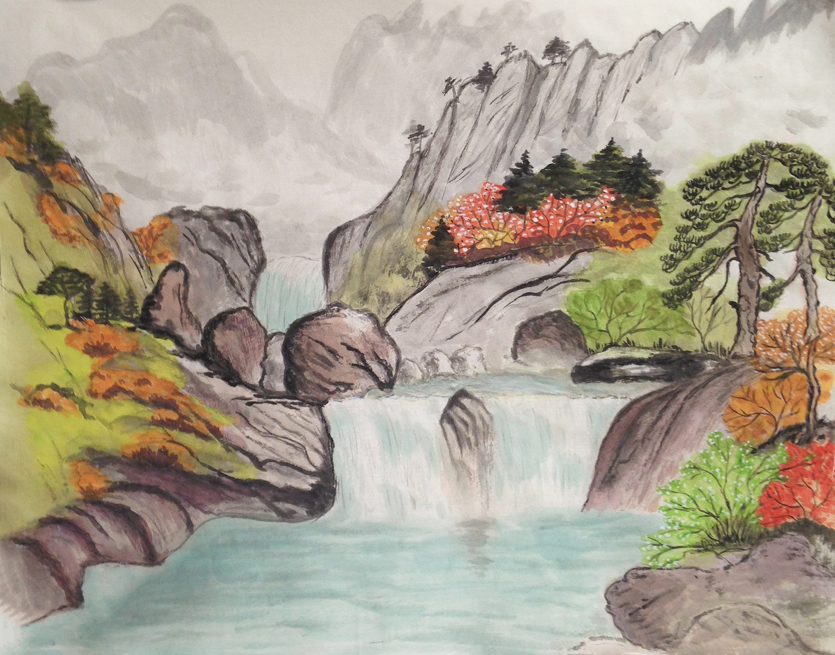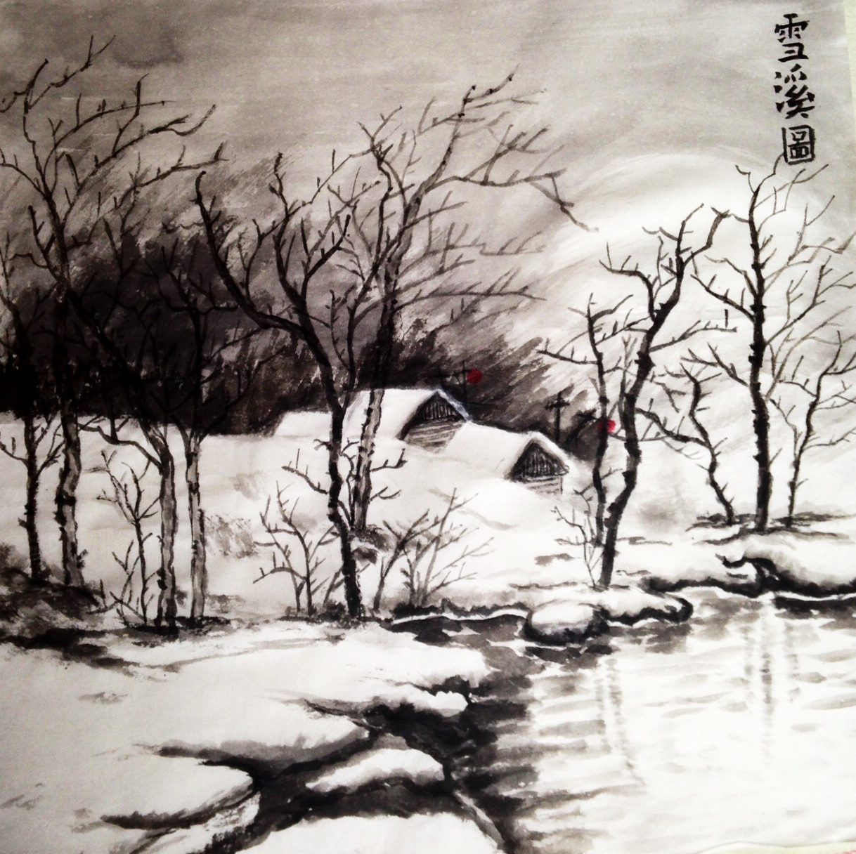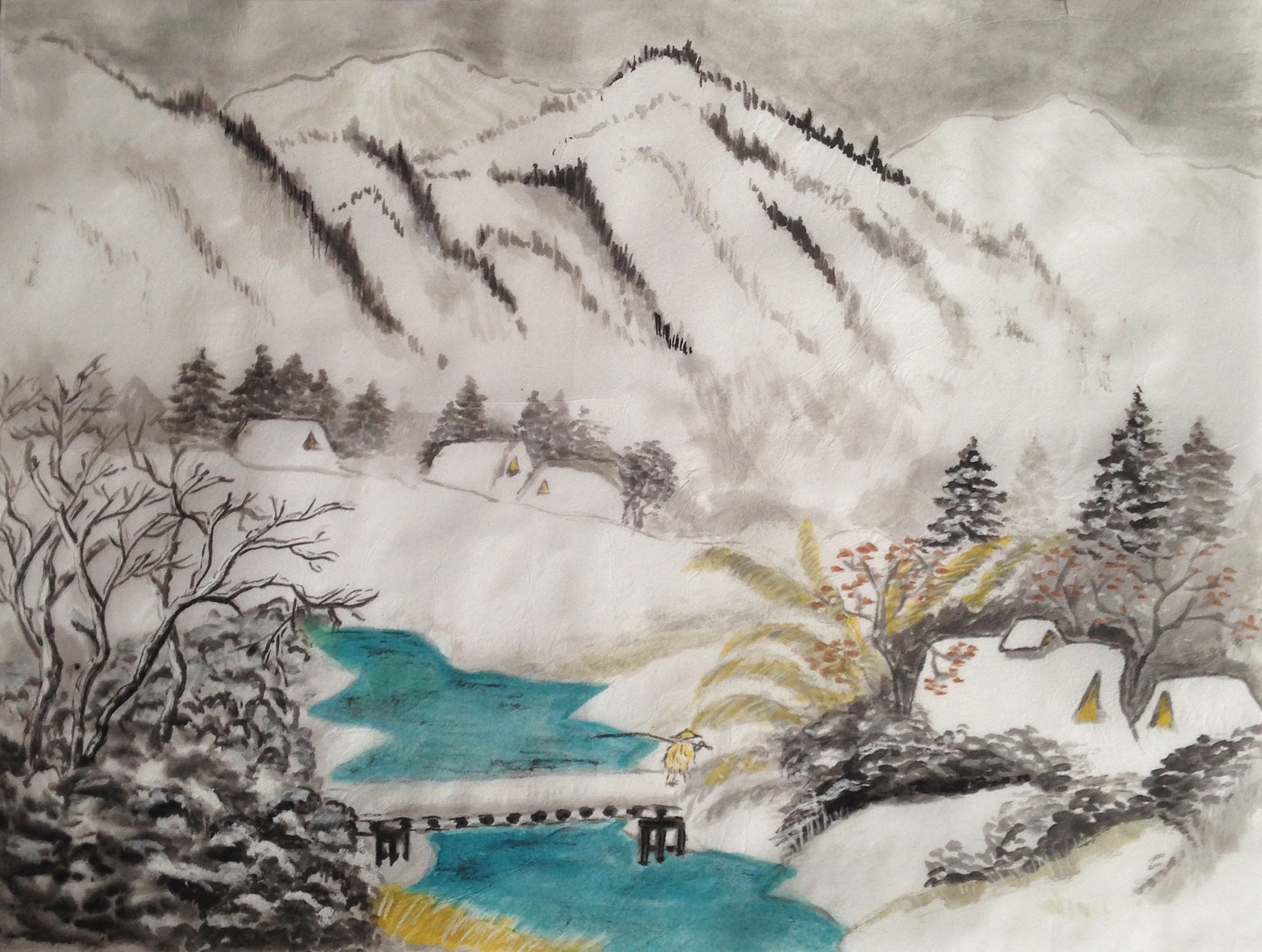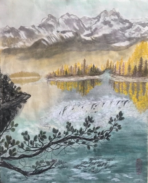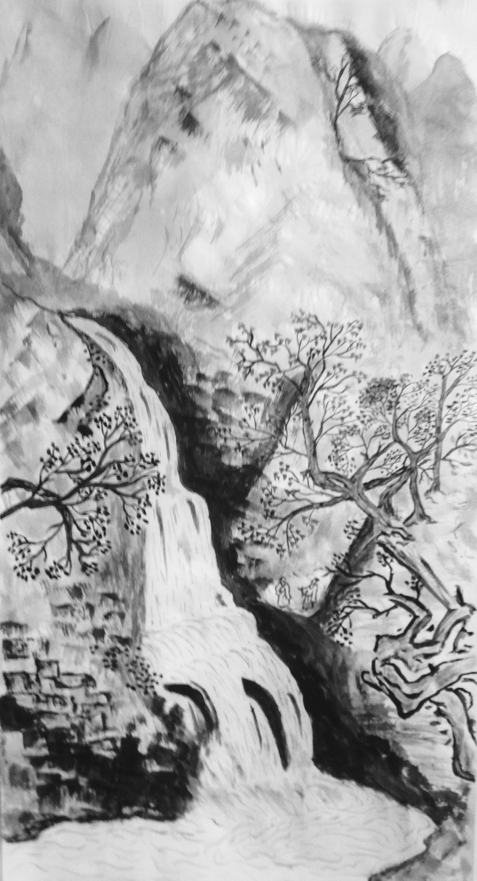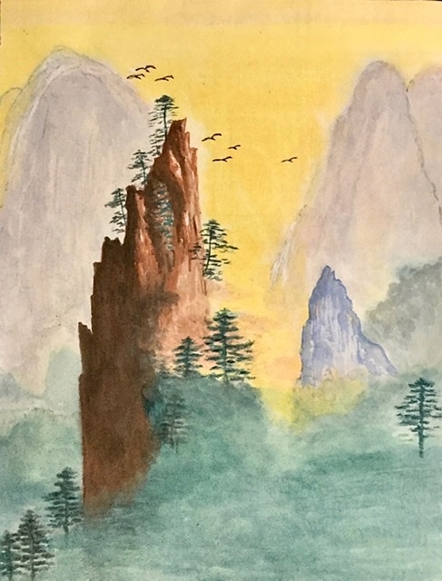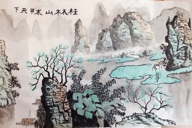 Chinese landscapes should have the harmony of heavenly light —the symbol of Yang — and the black Yin of earth. Roughly the same amount black and white is a sign of a good quality Chinese painting.